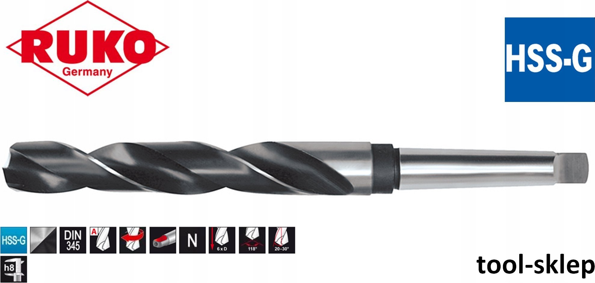 Τρυπάνι Sourcing Σπειροειδές τρυπάνι μετάλλου με κωνική απόληξη Morse RUKO O 20.0 mm